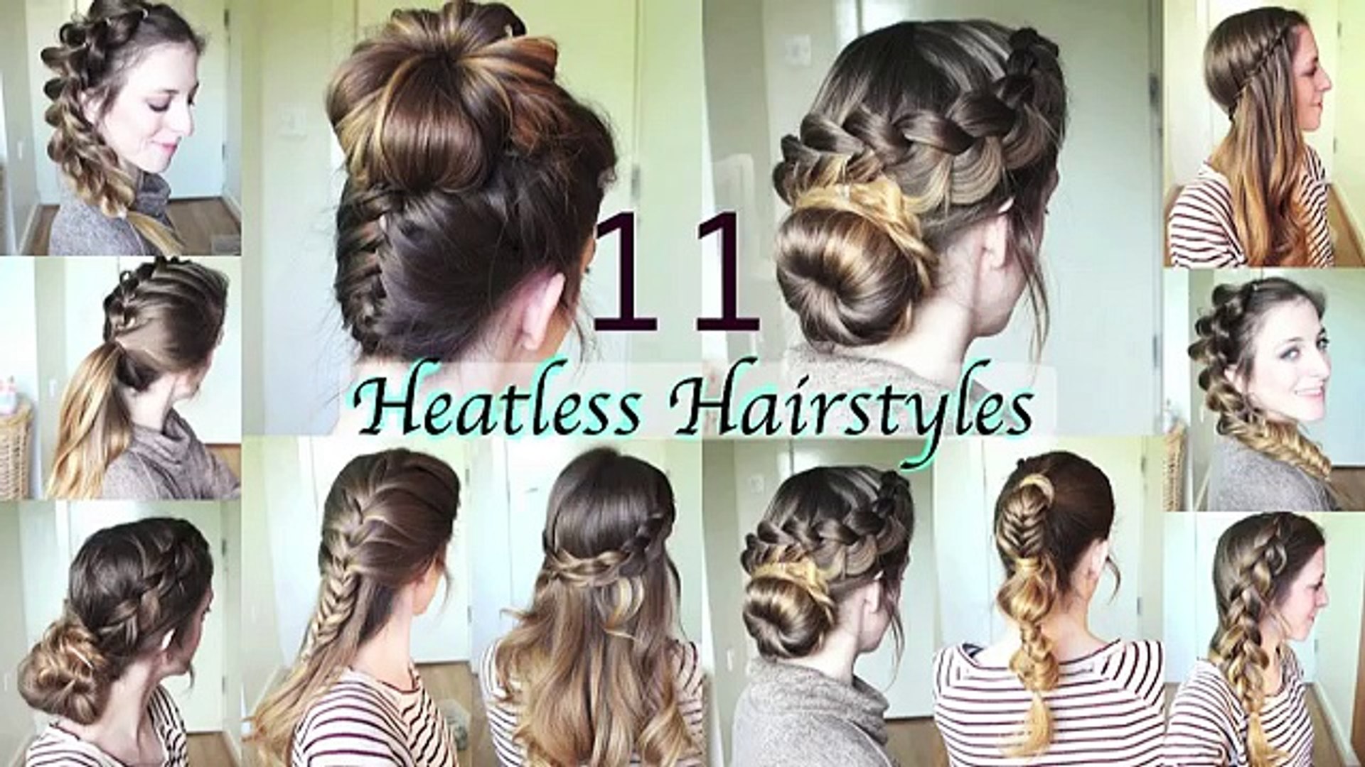 Pull a small section of hair out to wrap around the base of the pony. Ahead, check out the coolest heatless hairstyles to try out this summer. These hairstyles are quick and easy to do, and best of all, they're heatless! Trendy and popular braided hairstyles, twists, messy buns. Easy and quick hair straightening at home | 15 heatless hairstyles | hairstyle tutorials please subscribe for more videos :